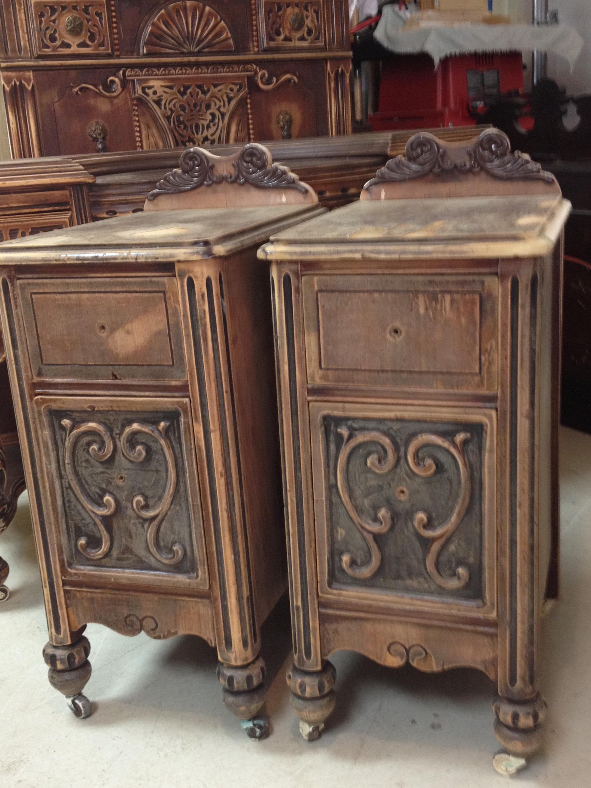 Refurbished, clear-coated drawers restored for smooth operation