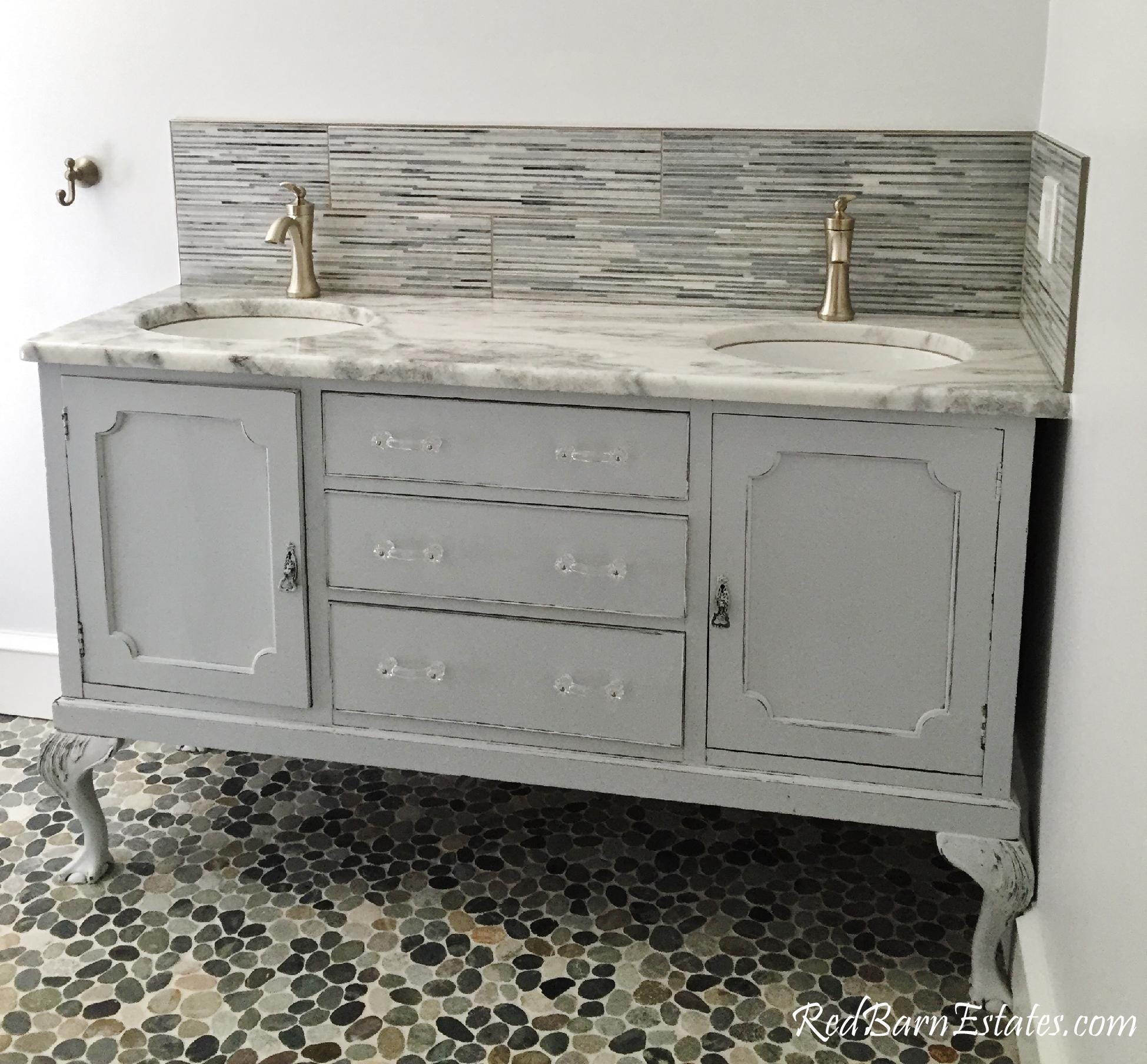 We make your bathroom edit process comfortable and stress free! đ This purchase is for the cabinet only, free shipping, 100% restoration, all 12 cabinet alterations listed below, plus 100% of RedBarnEstatesâ expertise and guidance. This purchase does NOT include a countertop, sink or faucet, although RedBarnEstates expertly works on every detail with you and weâll gladly help you with selecting those.
